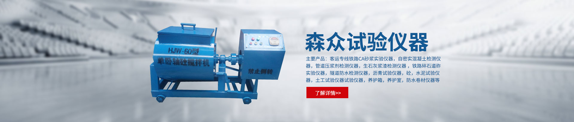 完善的售后服務(wù)體系滄州森眾試驗(yàn)儀器有限公司是目前國內(nèi)生產(chǎn)公路試驗(yàn)儀器、建筑試驗(yàn)儀器的重點(diǎn)骨干企業(yè)。在國內(nèi)具有較高的度,檢測手段完善,技術(shù)力量雄厚。產(chǎn)品嚴(yán)格按照,國家標(biāo)準(zhǔn)設(shè)計(jì)生產(chǎn),多次在國家重點(diǎn)工程中標(biāo)。除配套供應(yīng)試驗(yàn)儀器設(shè)備外,我公司還承擔(dān)新建試驗(yàn)室的規(guī)劃設(shè)計(jì),設(shè)備選型,安裝調(diào)試,配件供應(yīng)與后勤保障等業(yè)務(wù)。主要產(chǎn)品:客運(yùn)專線鐵路CA砂漿實(shí)驗(yàn)儀器,自密實(shí)混凝土檢測儀器,管道壓漿劑檢測儀器,生石灰漿渣檢測儀器,鐵路碎石...